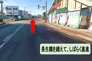 長生橋を越えて右手に松田ペットが見えるため、そのまま直進します
