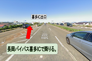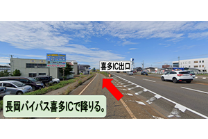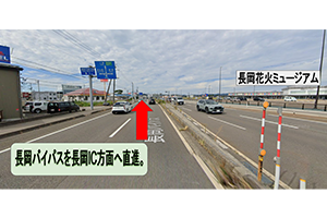 長岡バイパスを長岡IC方面へ直進します。(右手に長岡花火ミュージアムがあります)