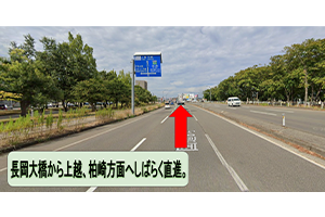 長岡大橋を越えて上越、柏崎方面へしばらく直進します