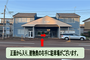 左手にポワイトGが見えるため、正面から入って頂くと当院駐車場がございます