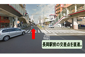 長岡駅(大手口)を背にして、駅前交差点を直進します