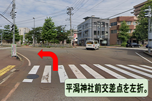 「新潟県立近代美術館方面」からお車で当院までの道順